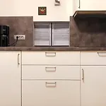 Obogatite svoje bivanje s popolnoma opremljeno kuhinjo v nastanitvi, opremljeno z mikrovalovno pečico, električnim kotličkom in hladilnikom za vaše udobje. Apartma je opremljen s pripomočki za pripravo kave in čaja, kar gostom nudi priročno in prijetno bivanje.